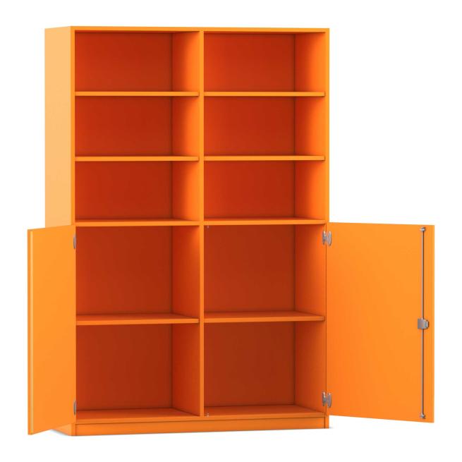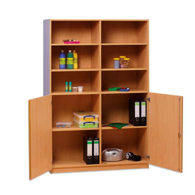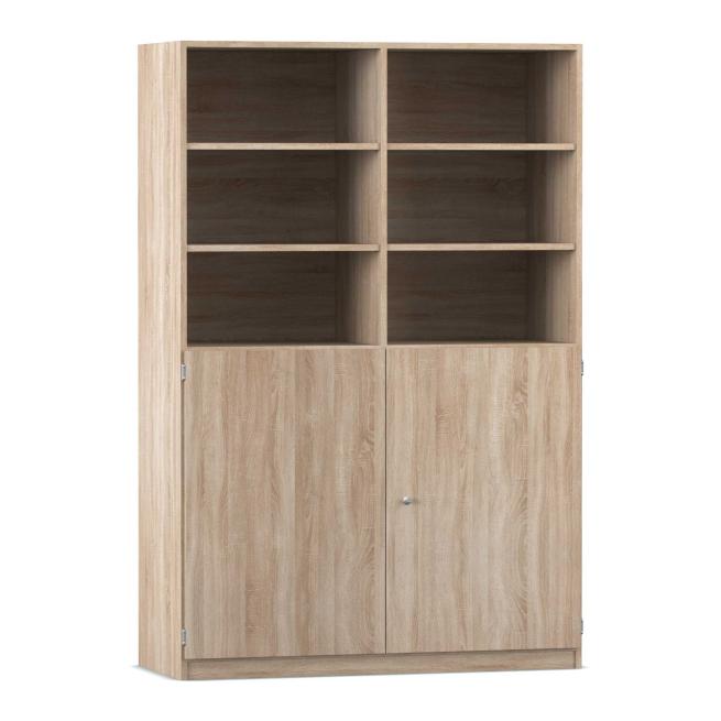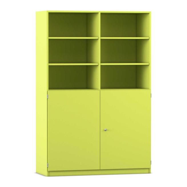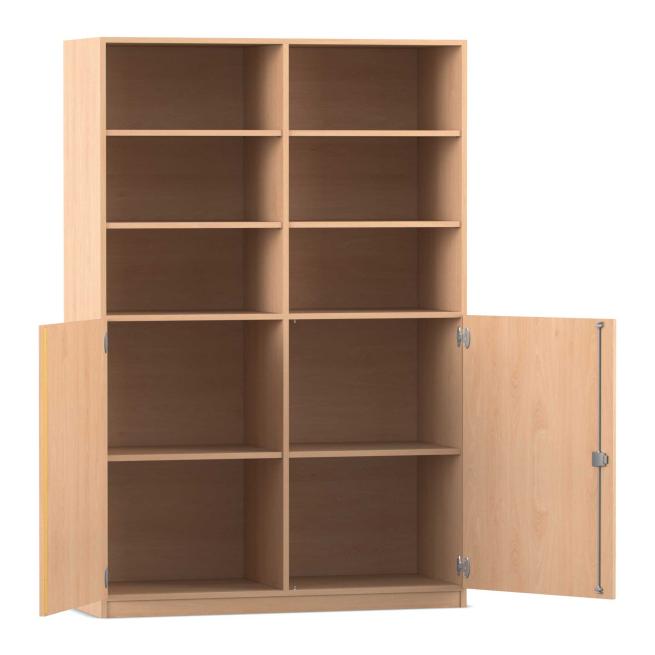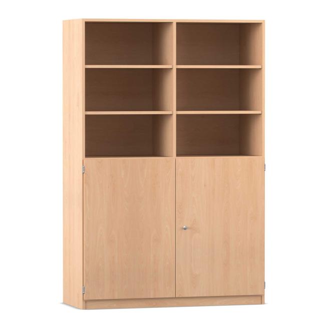 Unten haben Sie einen abschließbaren Schrank. Das obere Regalteil ist für jedermann gut zugänglich. Die Teilung ist dekorativ und Sie sehen auf einen Blick, ob etwas aus dem Regal genommen und nicht zurückgebracht wurde. Unten im Schrank ist 1 weiterer Boden zu finden.