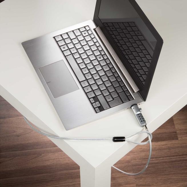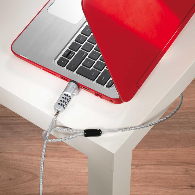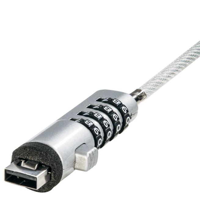 Ob Laptop oder andere Geräte mit USB-Anschluss – das Notebookschloss mit seinen 10.000 Kombinationsmöglichkeiten schützt vor Diebstahl. Zusätzlichen Schutz bietet das robuste Sicherungsseil aus Carbonstahl. Einen 4-stelligen Verrieglungscode für das Zahlenschlosswählen Sie individuell.