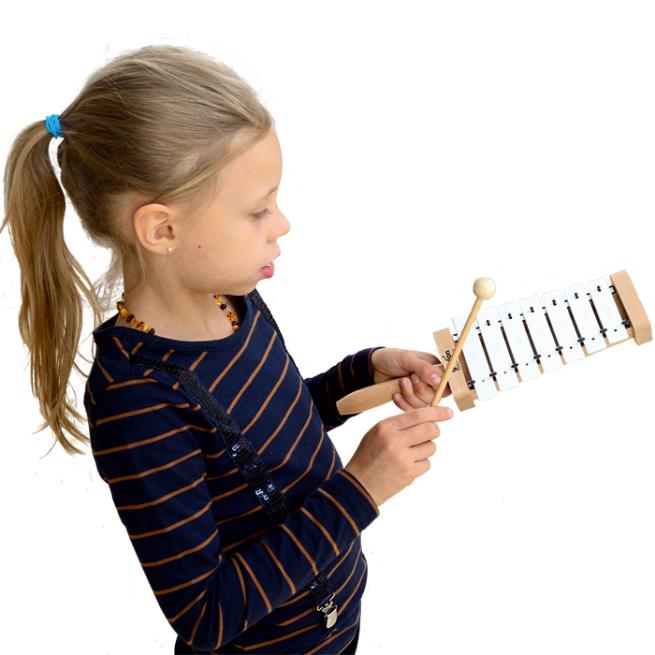 Glockenspielklänge und Bewegungsfreiheit – das Hand-Metallophon, wie es auch genannt wird, macht beides möglich. Die Klangplatten stecken sicher auf dem Instrument fest. Damit können sich Ihre Schüler frei bewegen und auch beim Tanzen oder im Stuhlkreis musizieren.