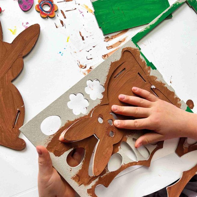 RePaCrea steht für Recycling, Papier und Kreativität. Die Körbchen bestehen zu 100 % aus recyceltem Material, Made in Germany. Der integrierte Stanzhelfer erleichtert das Herauslösen, das Stecksystem hält stabil. So entsteht im Team ein ganzer Hasenbau – perfekt für Gruppen, Feste und die Elternarbeit.