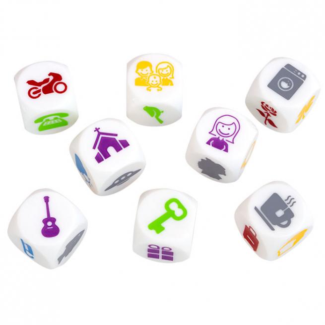 Wer dran ist, würfelt mit allen 8 Würfeln und sucht sich ein Motiv aus. Dieses stellt dann die Kategorie dar. So kann das Haus-Motiv z. B. Stadt, Gebäude oder auch einfach das Haus bedeuten. Jetzt wird mit den übrigen 7 Würfeln gewürfelt. Alle Mitspieler versuchen nun sinnvolle Wörter aus der vorgegebenen Kategorie und den neu erwürfelten 7 Motiven zu bilden. Wer zuerst 4 Wörter gefunden hat, ruft laut „Stopp!“. Spielvarianten sind möglich. So können die Schüler auch mit allen Würfeln gleichzeitig würfeln und anhand dieser Motive z. B. eine kurze Geschichte aufschreiben.