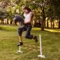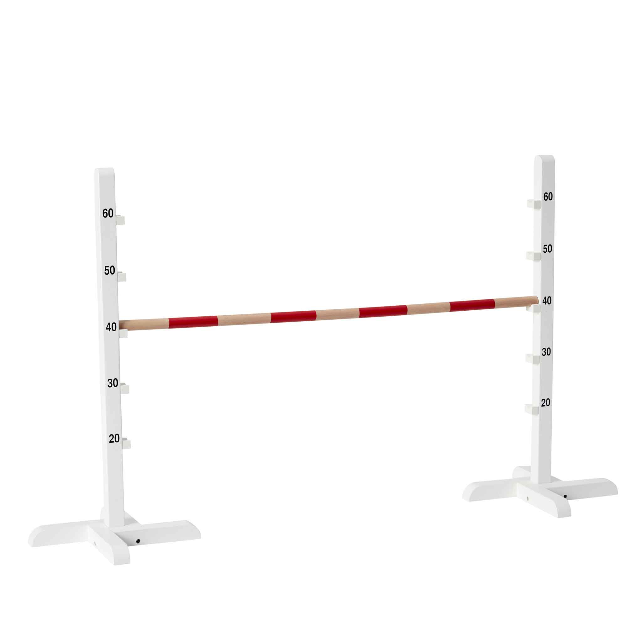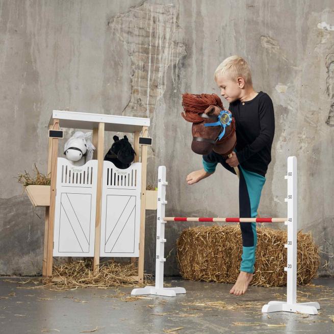 Das höhenverstellbare Hindernis nutzen Sie und Ihre Kinder optimal für Training und Spiel mit den Hobby Horse Steckenpferden (bitte separat bestellen). Die Hindernisstange legen die Kinder einfach in die Haltervertiefungen der beiden Sprungständer. Zunächst beginnen sie bei einer Höhe von 20 cm und steigern sich auf bis zu 60 cm. Zur Sicherheit fällt die Stange bei Berührung leicht herunter, sodass die Kinder sich daran nicht wehtun. Ein tolles Training für die eigene Sprungkraft und das Geschick.