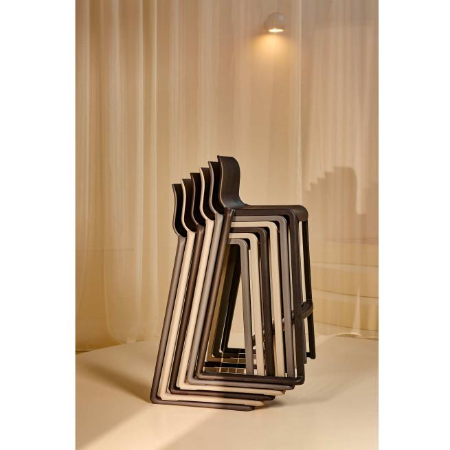 Der Hatton Stool mit halbhoher Rückenlehne besteht aus einem Stück spritzgegossenem, glasfaserverstärktem Polypropylen. Diese Bauweise sorgt für Stabilität und eine extrem lange Lebensdauer. Die strukturierte Oberfläche verhindert das Abrutschen beim Sitzen – auch bei viel Bewegung. Sie stapeln ihn bis zu fünf Stück hoch oder gestalten Räume im Nu um. Die breite Fußablage und der ergonomische Sitz mit abgerundeter Vorderkante entlasten spürbar die Beine. Eine optimale Unterstützung auch bei längerem Sitzen.