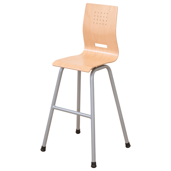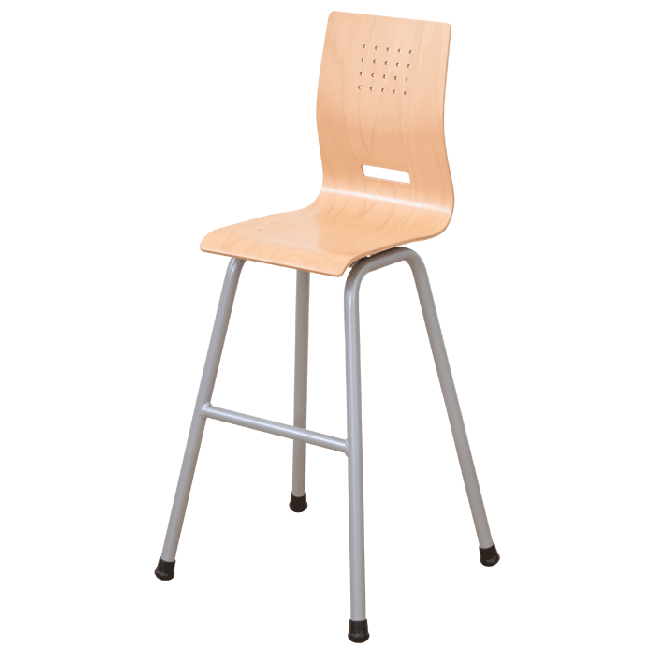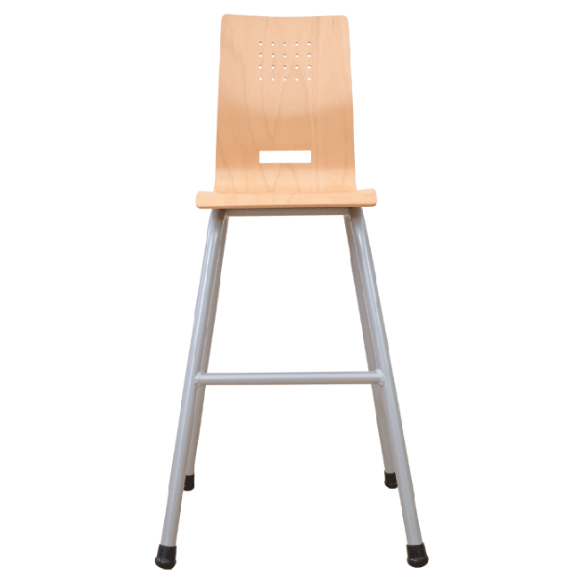 • Hochstühle in 3 Ausführungen: Buchensperrholz, 9-fach verleimt – mit oder ohne Lehne – Kunststoffschale mit rutschhemmenden Noppen in 5 verschiedenen Farben