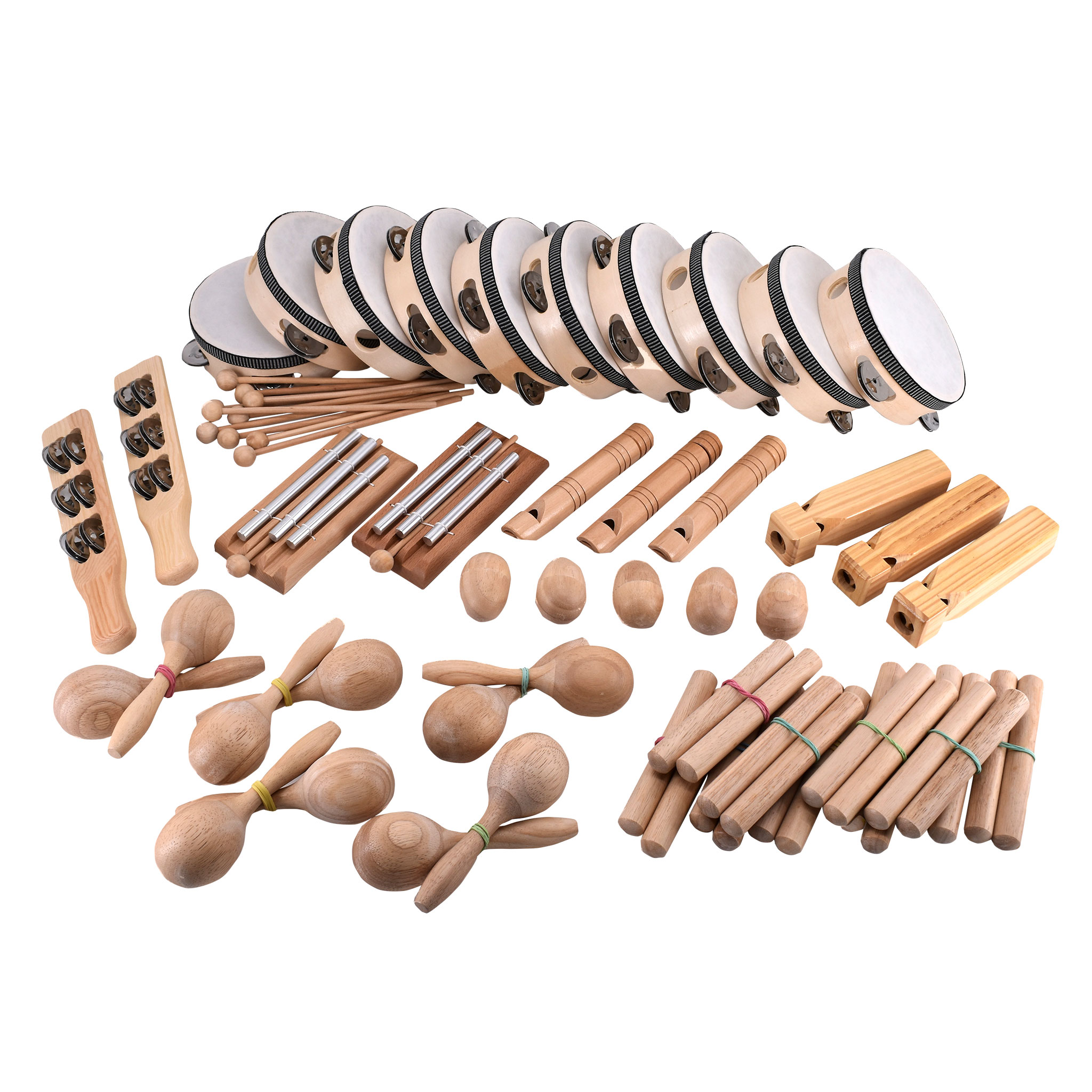 Tolle Kombi zum Entdecken unterschiedlicher Klangwelten: klassische Percussion-Instrumente und Klangspielzeuge. Mit dem Set erzeugen Sie zum Beispiel während Aufführungen oder auch innerhalb der Musikalischen Früherziehung spannende Klangeffekte. Die Rhythmik-Instrumente sind speziell für kleine Kinderhände gefertigt. Für 10 Kinder ab 3 Jahren.