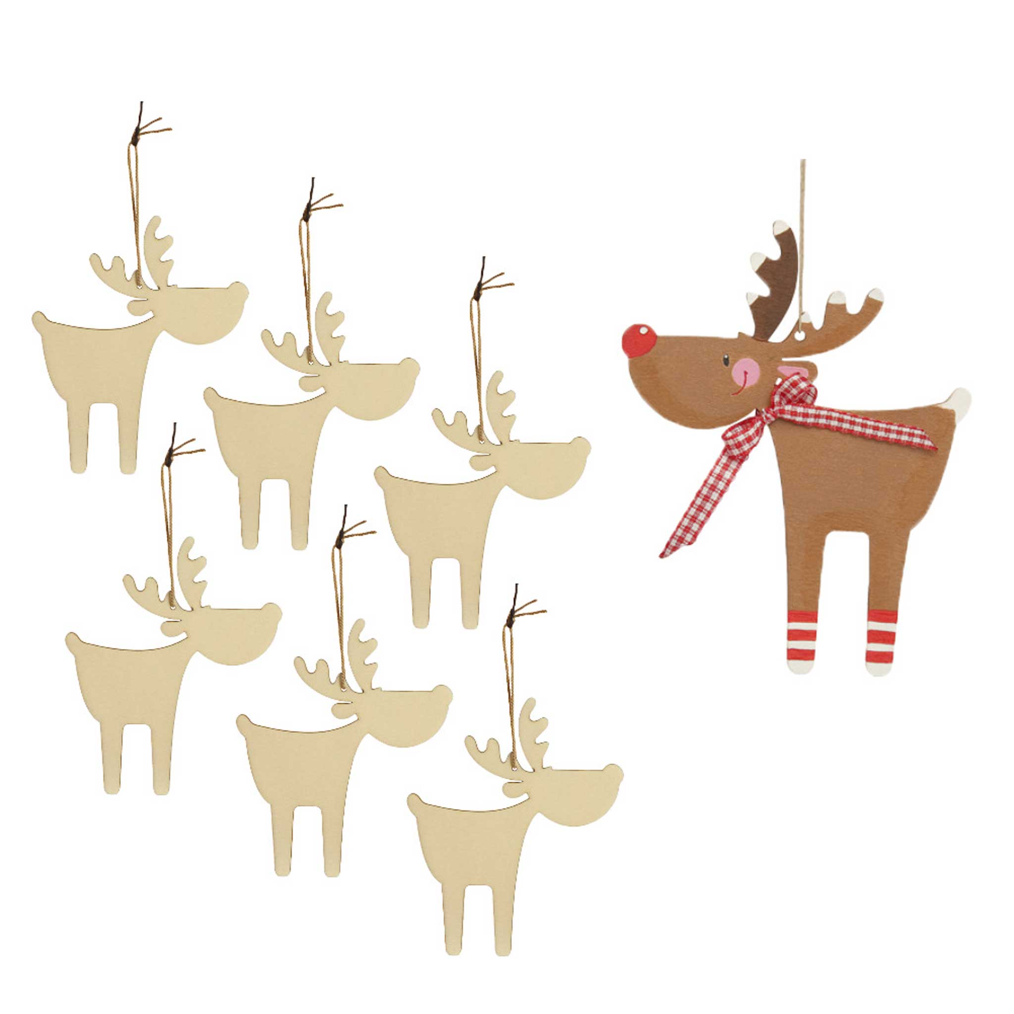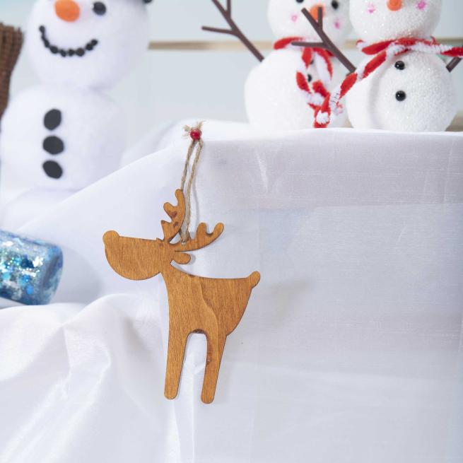 Elch-Blanko-Holzanhänger zum Selbstgestalten. Individuell bemalt, verziert oder beklebt sind die drolligen Anhänger ein Hingucker an Weihnachtsbaum oder -geschenk. Auch für kleinere Kinder geeignet.