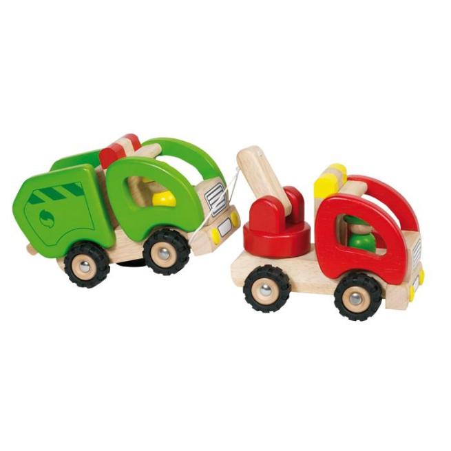 Das natürliche Material Holz ist angenehm für Kinderhände. Alle Kanten der stabilen Holzfahrzeuge sind weich abgerundet. Die Holzfiguren in den Fahrerkabinen von Feuerwehr, Traktor und Abschleppwagen sitzen fest an ihrem Platz – und die Fahrt geht los!