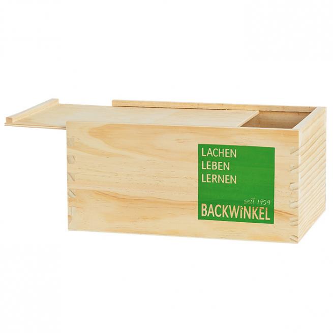 Als praktische Materialbox empfehlen wir Ihnen unsere Holzbox mit Deckel. Der Deckel wird einfach eingeschoben und schützt so den Inhalt. Praktisch auch beim Transport. Das Holz ist unbehandelt, bedruckt mit unserem Logo.