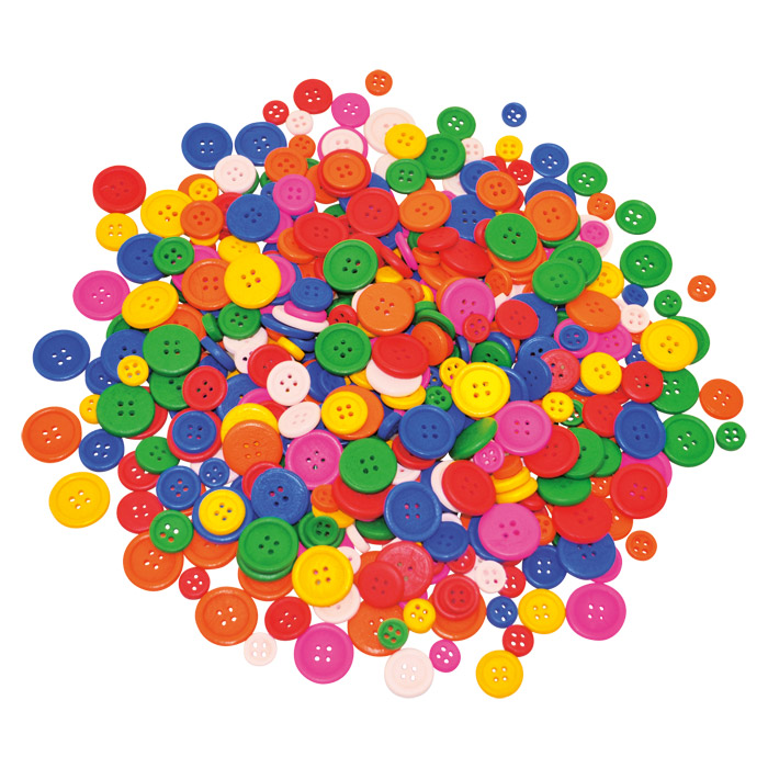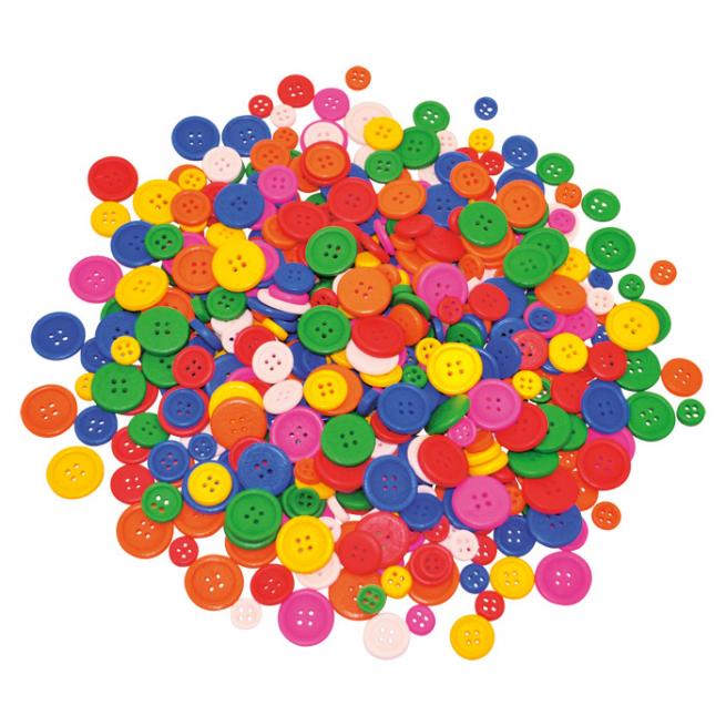 Runde Knöpfe in verschiedenen Größen und Farben, mit 4 Garnlöchern.