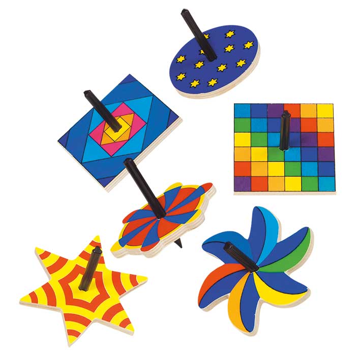 24 bunte Kreisel im Set, 6 verschiedene Designs.