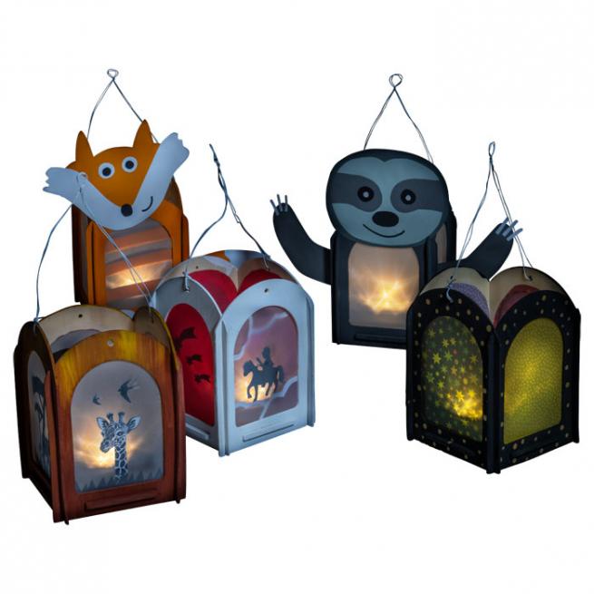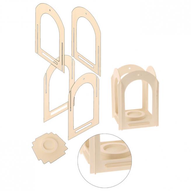 Ganz kreativ verwandeln Ihre Kinder die 4 Wände des Holzlaternen-Bausatzes z. B. in lustige Tiere oder schicke Kunstwerke. Der Aufbau der Laterne ist superleicht: Boden und Wände einfach in die entsprechenden Aussparungen stecken.