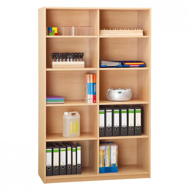 Praktisches Regal mit sehr stabilem Korpus und Sockel. Die Mittelwand verringert die Fachbreite, dadurch sind die Böden belastbarer.