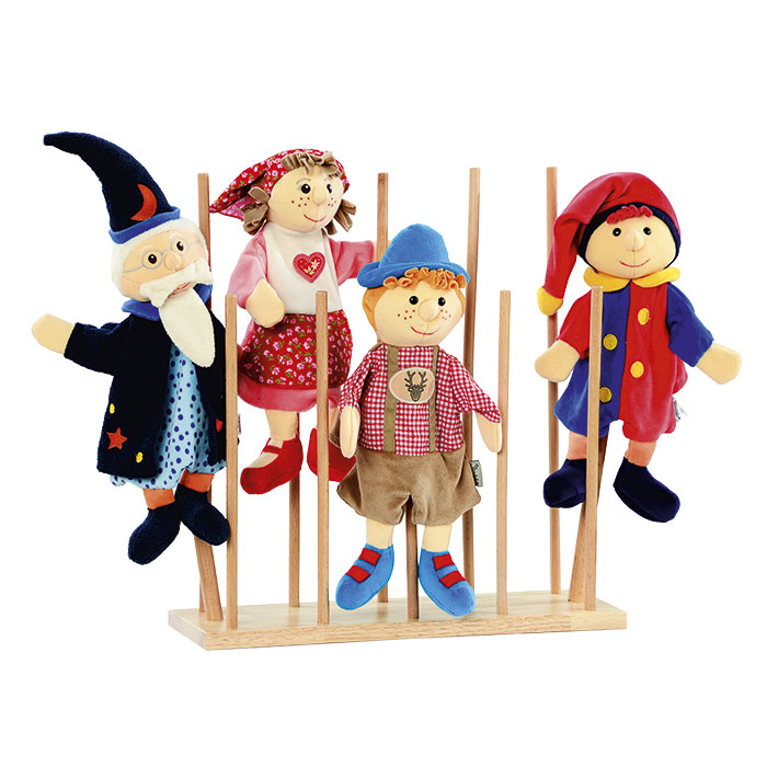 Die perfekte Aufbewahrung für Ihre Handpuppen. Die 12 Stangen in drei unterschiedlichen Längen (ca. 30, 35 und 40 cm) können nach Belieben gesteckt werden. So warten die Puppen wohl sortiert schon auf Ihre nächste Vorstellung.