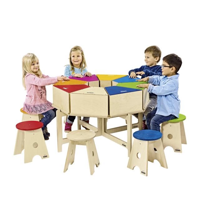 Praktische Erweiterung für die Klassenzimmer-Cajons mit Holzplatte. In optimaler Höhe spielen die Kinder die Instrumente sitzend auf dem optional erhältlichen Hocker oder stehend. Die beiden Einzelteile schieben Sie einfach mittig zusammen und das Gestell steht fest und stabil. Die Cajon-Holzplatte liegt auf einer weichen, kratzervermeidenden Schaumgummipolsterung.