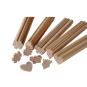 Sie erhalten je Motivthema 5-6 Holzstangen (ca. 30 cm lang, 6 cm breit) aus massivem, unbehandeltem Holz.