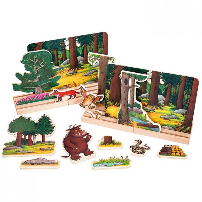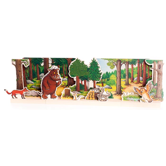 Mit bekannten Lieblingsfiguren eine ganz eigene Geschichte erzählen und auf die Bühne bringen – das klappt spielend mit den unterschiedlichen Holztheatern. Die Kulissen und Figuren jedes Holztheaters stecken Sie und Ihre Kinder einfach in die Rillen der jeweils 4 beiliegenden Holzelemente.