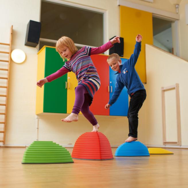 Fördert Koordination und Gleichgewicht. Über diesen Parcours balancieren die Kinder, ohne den Boden zu berühren. Kippen dank rutschfestem Gummirahmen nicht um.