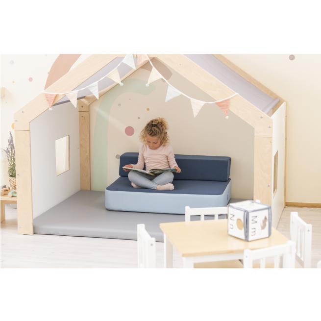 Multifunktionales Hüpfpolster-Set, das Bildungseinrichtungen zum Wohlfühlort macht. Das Set aus Boden- und Rückenpolster ist angenehm weich, hat eine den kindlichen Bewegungsapparat schonende, aber feste Schaumstofffüllung und ist mit einem bequemen Textil- und Kunstlederbezug versehen. Die Kinder nutzen die Polster zum ausgiebigen und altersgerechten Springen oder zum entspannten Ausruhen. Die rutschfeste Unterseite aus Turnmattenstoff sorgt dabei stets für sichere Bodenhaftung. Dank kompakter Maße findet das Hüpfpolster nahezu überall seinen Platz. Das Rückenpolster verwandelt das Bodenpolster im Nu in ein kleines Sofa. Der Textilbezug ist abnehmbar und lässt sich bei 40 °C schonend waschen. Hierfür einfach den Bezug auf links drehen und den Reißverschluss schließen.