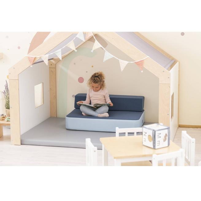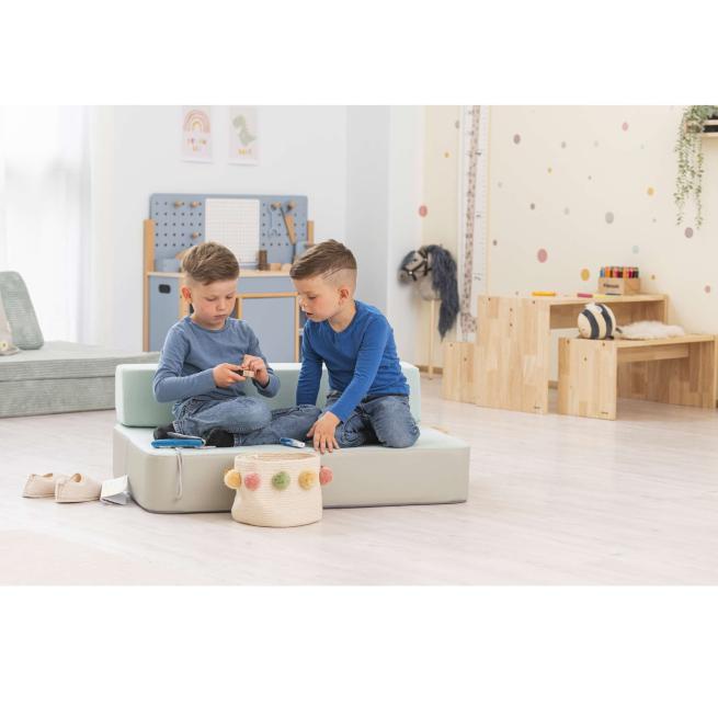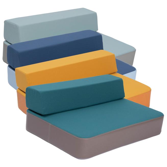 Multifunktionales Hüpfpolster-Set, das Bildungseinrichtungen zum Wohlfühlort macht. Das Set aus Boden- und Rückenpolster ist angenehm weich, hat eine den kindlichen Bewegungsapparat schonende, aber feste Schaumstofffüllung und ist mit einem bequemen Textil- und Kunstlederbezug versehen. Die Kinder nutzen die Polster zum ausgiebigen und altersgerechten Springen oder zum entspannten Ausruhen. Die rutschfeste Unterseite aus Turnmattenstoff sorgt dabei stets für sichere Bodenhaftung. Dank kompakter Maße findet das Hüpfpolster nahezu überall seinen Platz. Das Rückenpolster verwandelt das Bodenpolster im Nu in ein kleines Sofa. Der Textilbezug ist abnehmbar und lässt sich bei 40 °C schonend waschen. Hierfür einfach den Bezug auf links drehen und den Reißverschluss schließen.