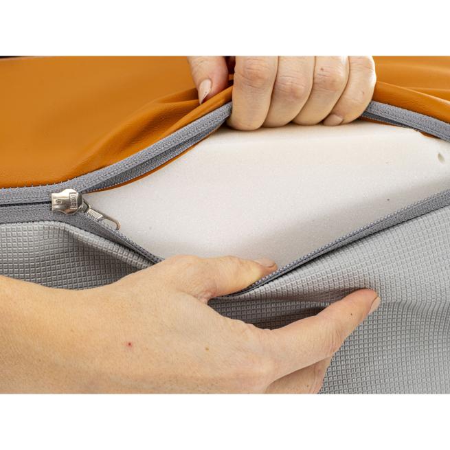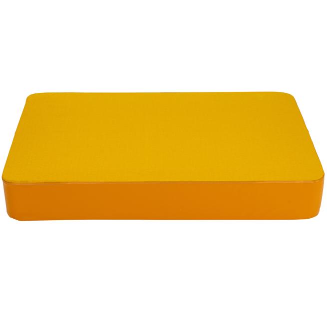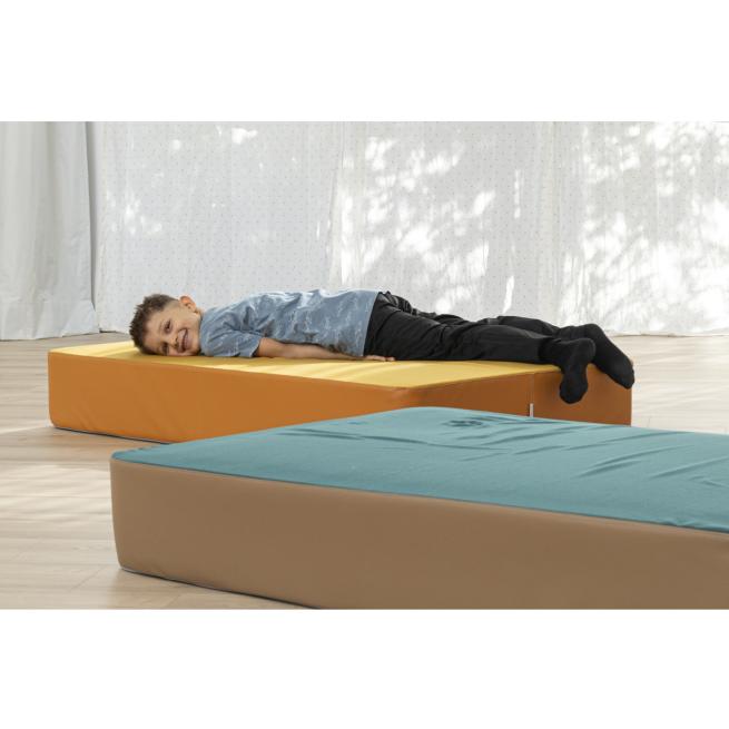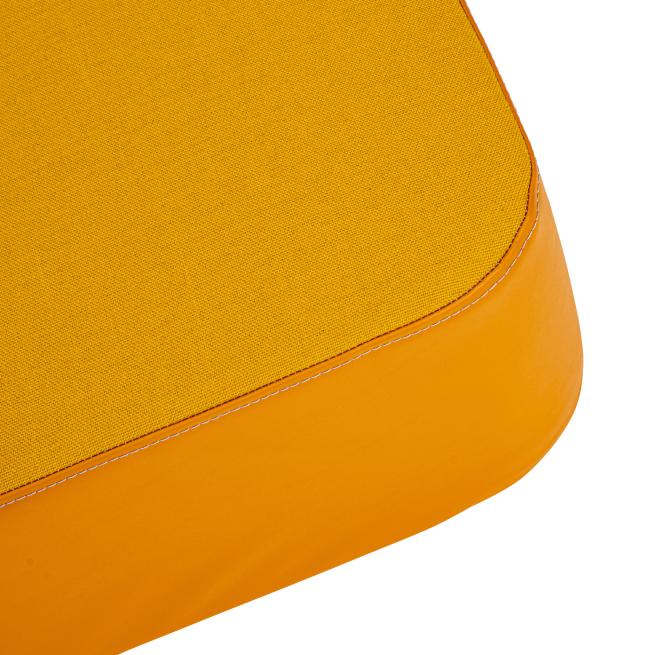 - Bezug oben: 100 % Polyacryl (PAN)<br/>Bezug seitlich: Kunstleder: 100 % Polyester mit Polychlorid-Beschichtung (PVC)<br/>Unterseite: Turnmattenstoff: 65 % Polychlorid, 35 % Polyester