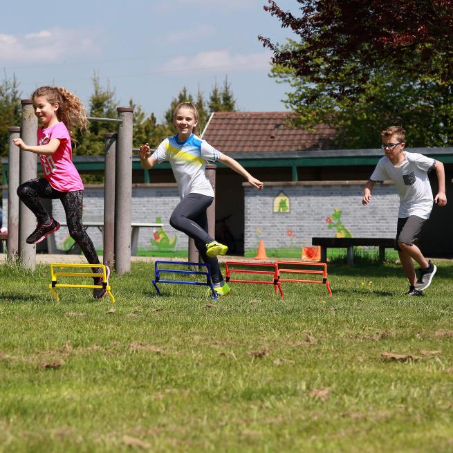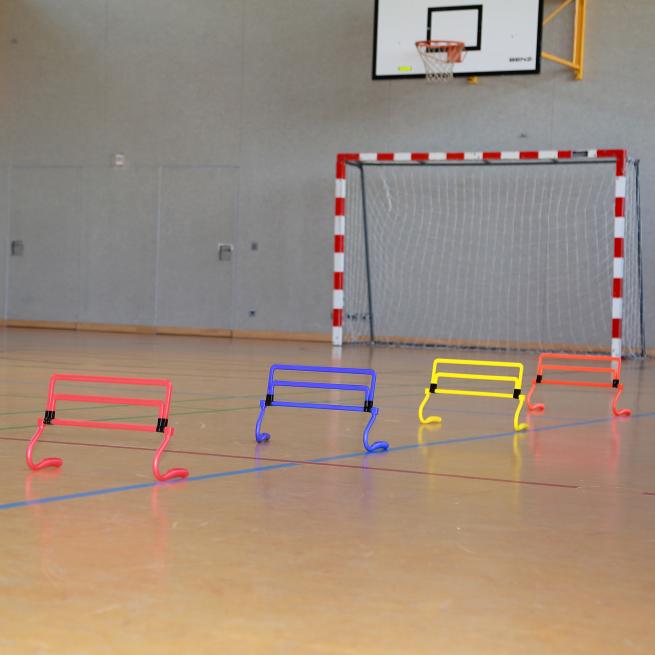Das Set enthält 4 Hürden in den Farben Gelb, Rot, Blau und Orange.
