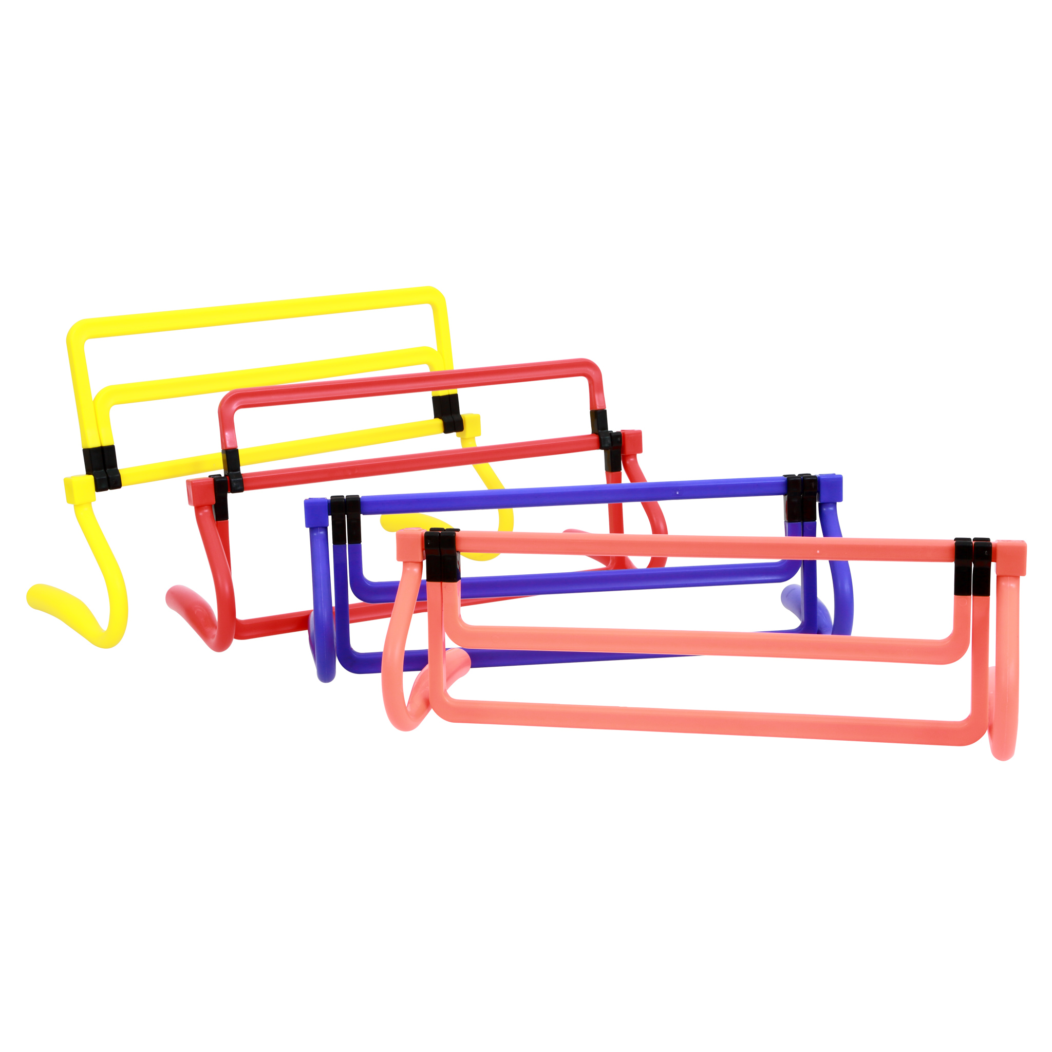 Schnelligkeit und Koordination abwechslungsreich trainieren. Nutzen Sie dafür diese 4 höhenverstellbaren Hürden. Sin sind verstellbar von 15, 23, 30 bis 37 cm. Im Nu stellen Sie einen Parcours mit unterschiedlichen Schwierigkeitsstufen auf.