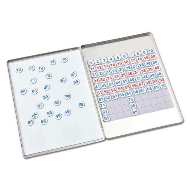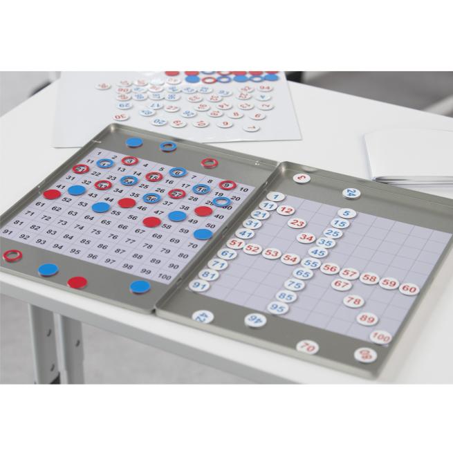 100 Zahlenplättchen, beidseitig bedruckt mit den Zahlen von 1 – 100.