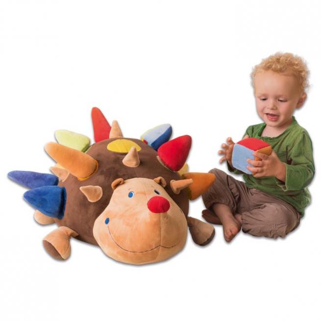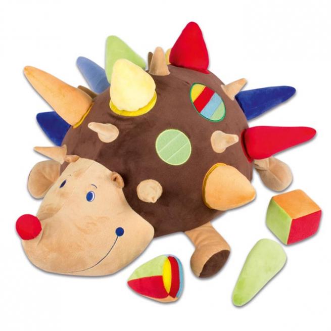 Wenn die Kleinen ihre Sinne und ihre Wahrnehmung entdecken, ist Igel Oskar aus weichem Plüsch der optimale Begleiter. Oskars farbenfrohe Stacheln sind unterschiedlich groß und mit Klettverschlüssen befestigt. So nehmen die Kinder sie leicht ab und lernen dabei Farben sowie Formen kennen. Wenn sie die Stacheln leicht drücken, hören sie ein Rassel- oder Quietschgeräusch. Auch das Zuordnen lernen die Kinder spielend, denn jeder Stachel hat seinen bestimmten Platz auf Oskars Rücken.