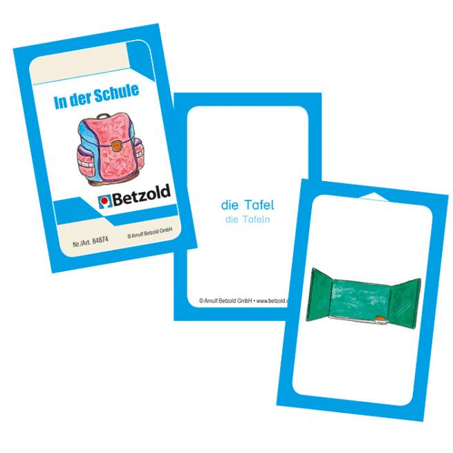 36 Karten, doppelseitig bedruckt. Die Vorderseite zeigt ein Bild, die Rückseite das entsprechende Wort. Auch für den Magischen Zylinder geeignet.