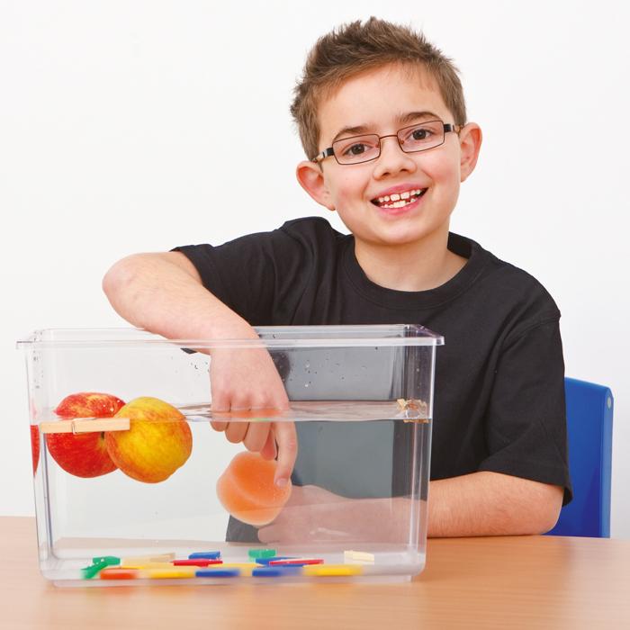 Optimal für Gruppen- und Freiarbeit. Beim Experimentieren erfassen Ihre Schüler leicht die physikalischen Begriffe von Masse und spezifischem Gewicht. Die Kinder beobachten, wie verschiedene Gegenstände im Wasser schwimmen, schweben oder sinken. Sie sehen, dass Metall schneller sinkt als Kunststoff und verstehen, warum Hohlkörper nicht untergehen. Die standfesten, formstabilen Behälter aus hochwertigem Kunststoff sind in zwei Größen erhältlich.