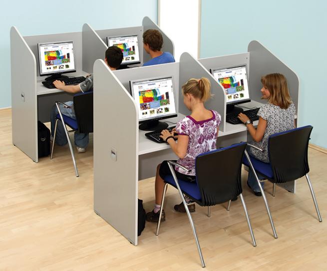 Arbeiten ohne Ablenkung. Die Trennwand macht aus dem Doppelarbeitsplatz zwei individuelle Plätze, die ungestörtes Arbeiten ermöglichen. Das Abschreiben wird ebenfalls verhindert. Dank seitlicher Kabeldurchlässe und in der Tischplatte ist der Einsatz auch als Tischreihe möglich. Das graue Dekor ist zeitlos. Zur einfachen Selbstmontage. Lieferung frei Bordsteinkante.