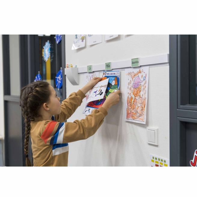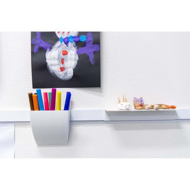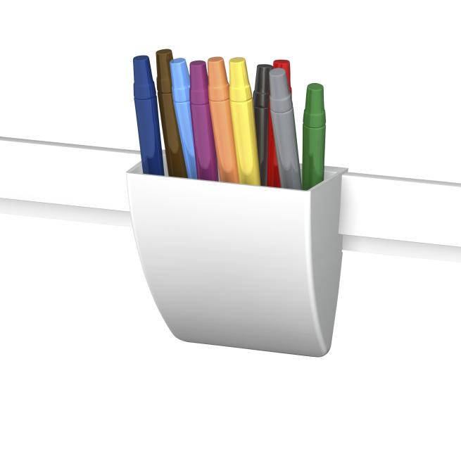 Optimale Ergänzung für das Info Rail Wandleistensystem. Mit dem Stiftehalter in Schwarz oder Weiß schaffen Sie Stauraum an Ihrer Info Rail Wandleiste. Einfach am gewünschten Platz auf der Leiste einklicken und schon haben Sie Ihre Stifte, Marker oder andere wichtige Utensilien griffbereit.