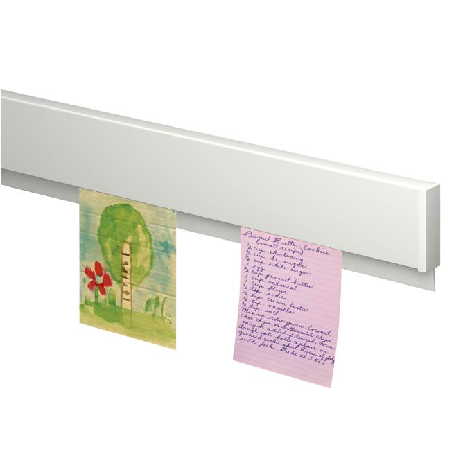 Die weiße, ein Meter lange Info-Rail Wandleiste kann mit zahlreichem Zubehör ausgestattet werden. An ihr präsentieren Sie Fotos, Karten, Lernmaterial, etc. schnell und ansprechend. Papier mit einer Grammatur von 80 g/m² oder auch Karton bis zu einer Stärke von 2 mm schieben Sie leicht in die 2-fache Gummieinspannung in der Schiene. Die Wandleiste befestigen Sie mit dem Montagematerial fix an der Wand auf den beiliegenden Verbindungsclips.