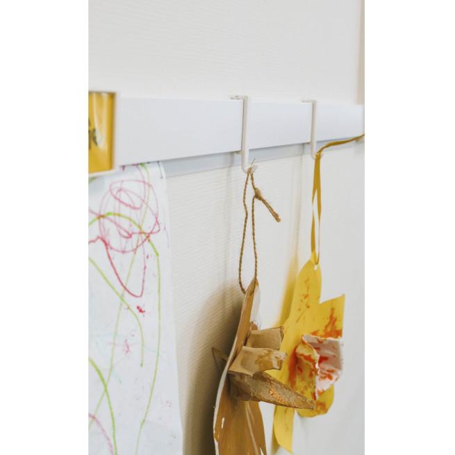 Die weiße, ein Meter lange Info-Rail Wandleiste kann mit zahlreichem Zubehör ausgestattet werden. An ihr präsentieren Sie Fotos, Karten, Lernmaterial, etc. schnell und ansprechend. Papier mit einer Grammatur von 80 g/m² oder auch Karton bis zu einer Stärke von 2 mm schieben Sie leicht in die 2-fache Gummieinspannung in der Schiene. Die Wandleiste befestigen Sie mit dem Montagematerial fix an der Wand auf den beiliegenden Verbindungsclips.