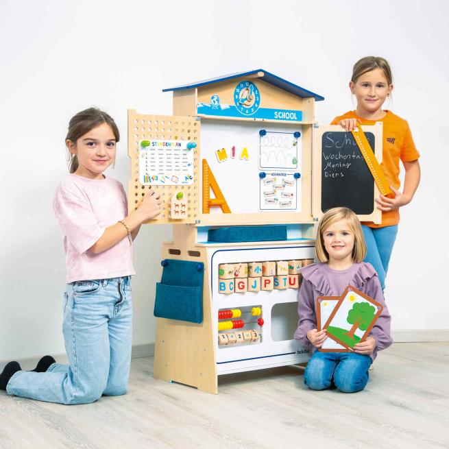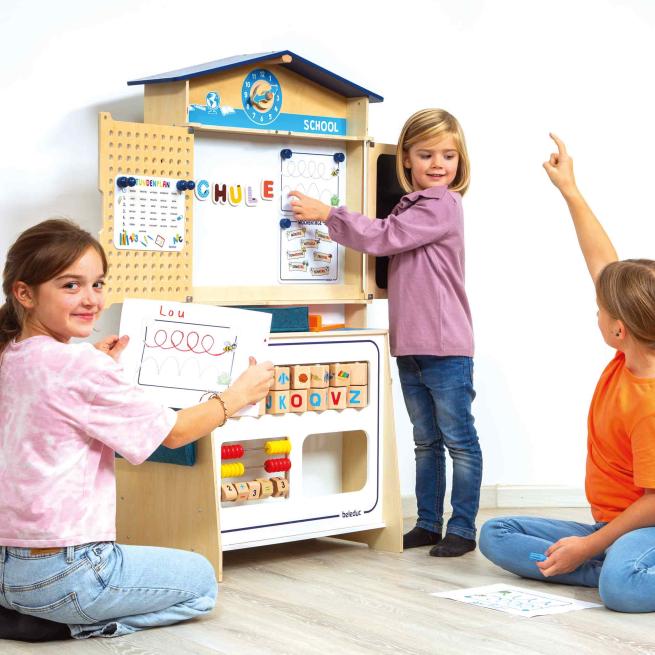 Wir sind groß geworden – jetzt spielen wir Schule! Fast nichts beschäftigt Kinder mehr als der Wechsel vom Kindergarten zur Schule. Unsere interaktive Spielschule fördert echte Lernfortschritte. Das neue Rollenspielelement „Schule“ sorgt für jede Menge Unterhaltung und kreatives Spielen und fördert ganz nebenbei das Lernen. Ideen zu spanndenen Schulaufgaben für Ihre kleinen wissbegierigen Schüler stehen als Download bereit.