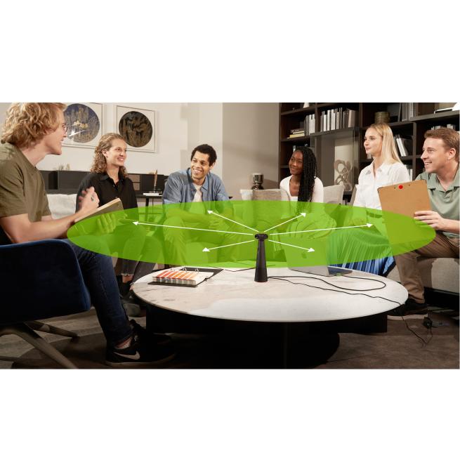 Dank dieser Technologie nehmen die Mikrofone Töne aus allen Richtungen auf, sodass die jeweils sprechende Person durch die Nachverfolgung immer sehr gut hörbar ist.