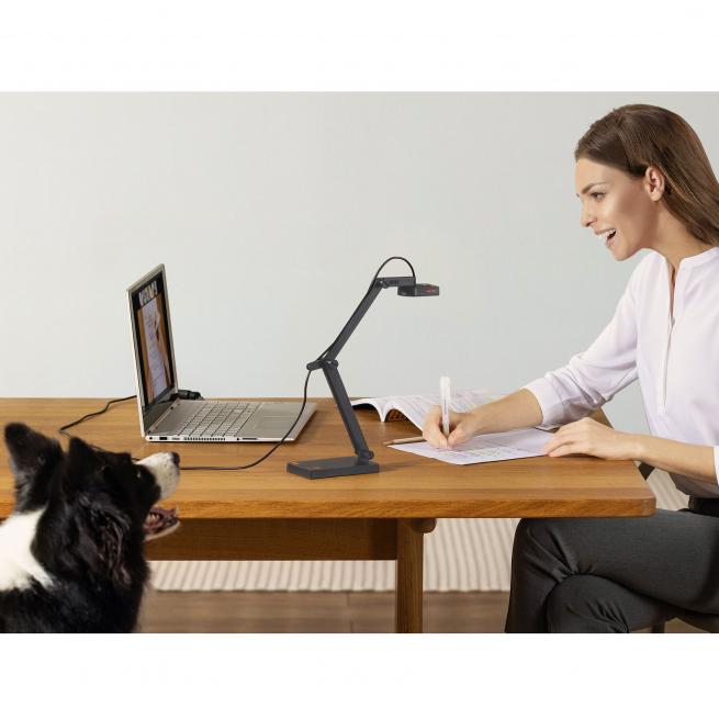 Der 8 Megapixel-Bildsensor liefert Ihnen Ultra-HD-Videokommunikation mit einer außergewöhnlichen Bildschärfe und Farbwiedergabe. Dank Multi-Gelenk-Arm verwandeln Sie Ihre V4K PRO Dokumentenkamera spielend leicht in eine Webcam. Das KI-gestützte Mikrofon unterstützt die Webcam-Funktion, indem es Hintergrundgeräusche eliminiert und den Klang Ihrer Stimme erhält. Zudem ist das Gerät kompatibel mit gängiger Videokonferenzsoftware wie Zoom, Google Meet, Skype, Microsoft Team und weiteren Diensten. Ausgestattet mit praktischer Plug-and-Play-Funktion, kompatibel mit allen USB-A-fähigen Geräten. Mit eingebautem LED-Licht.