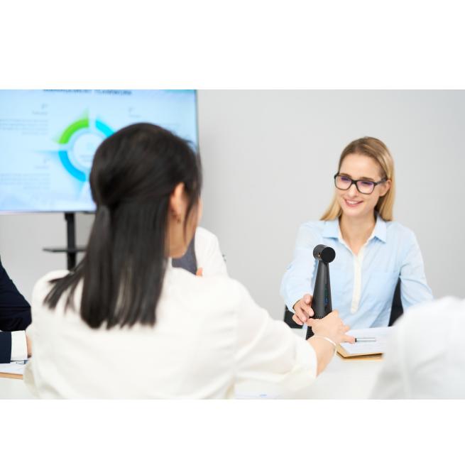 Ob Sie die IPEVO VOCAL Freisprecheinrichtung selbst halten oder an die Teilnehmenden im Raum weiterreichen, alle werden gehört. Dafür ist das Design der IPEVO VOCAL konzipiert. Hier muss sich niemand nach vorn beugen, um die Freisprecheinrichtung effektiv zu nutzen. Stellen Sie VOCAL einfach in die Mitte des Tisches und lassen Sie es die Stimmen aller Teilnehmenden einfangen bzw. den aktuellen Sprecher direkt aus der Nähe sprechen.