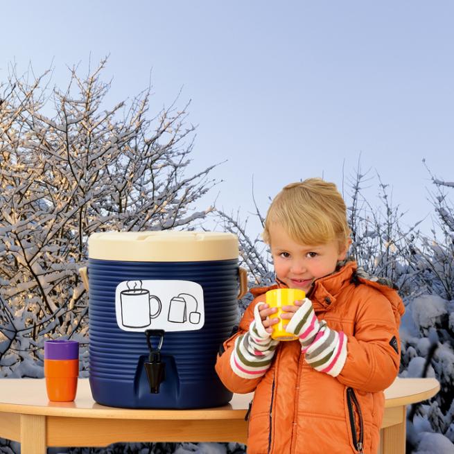 Ob kühler Saft, warmer Tee oder Wasser – mit dem Isolierbehälter stellen Sie die Getränkeversorgung im Klassenzimmer sicher. Der Innenmantel aus Edelstahl ist kinderleicht auswaschbar und sehr hygienisch. Nutzen Sie den Behälter z. B. auch, um darin Pulver-Kaltgetränke anzurühren. Mit der Getränkeversorgung fördern Sie die Gesundheit und Konzentrationsfähigkeit Ihrer Kinder!