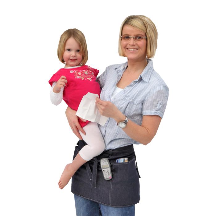 Manchmal hätten Sie gern noch zwei Hände mehr, wenn Sie Ihrer Arbeit im Kindergarten nachgehen? Plötzlich klingelt das Telefon irgendwo, ein Kind braucht ein Taschentuch und die Kollegin den Schlüssel zum Werkraum … Da kommt diese Schürze im zeitlosen Jeansdesign gerade recht. Dank dieses praktischen Helfers haben Sie die Hände immer frei und dennoch ganz alltägliche Utensilien stets griffbereit. Individualisieren Sie Ihre neue Schürze, indem Sie den einhängbaren Namensanhänger ganz nach Ihrem Geschmack gestalten. Mit Bindebändern. Waschbar bei 30 °C.