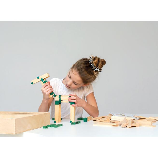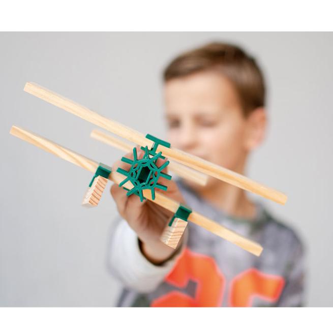 Die unterschiedlichen grünen Clip-Verbinder machen unzählige Konstruktionen mit Steckverbindungen in nahezu jedem Winkel möglich. Warum also JOIN-CLIPS-Baubrettchen (bitte separat bestellen) oder auch KAPLA-Bausteine (nicht enthalten) nur stapeln, wenn Ihre Kinder daraus Flugzeuge, Brücken, Boote, Tiere, Roboter, eine Murmelbahn und noch vieles mehr bauen können?