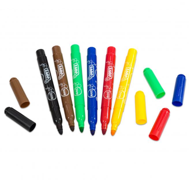 Stabil und auswaschbar sind die 12 Filzmaler in den beliebtesten Farben. Die breite, stabile Filzmine hält dem kindlichen Druck stand. Kleine Missgeschicke, die sich in Farbklecksen auf der Kleidung wiederfinden, lassen sich aus den meisten Textilien einfach auswaschen.