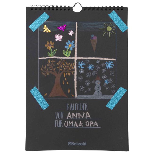 Ob weiße oder schwarze Kalender zum Selbstgestalten, hier bringt jedes Kind Monat für Monat die eigene Kreativität und zahlreiche Ideen zu Papier. Jeder Kalender besteht aus einem Deckblatt und 12 Monatsblättern. Die einzelnen Blätter sind mit jeweils einer Spirale verbunden, sodass sie leicht umzuschlagen sind und nicht ausreißen.