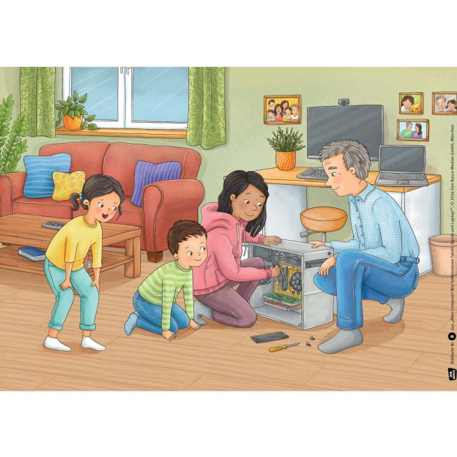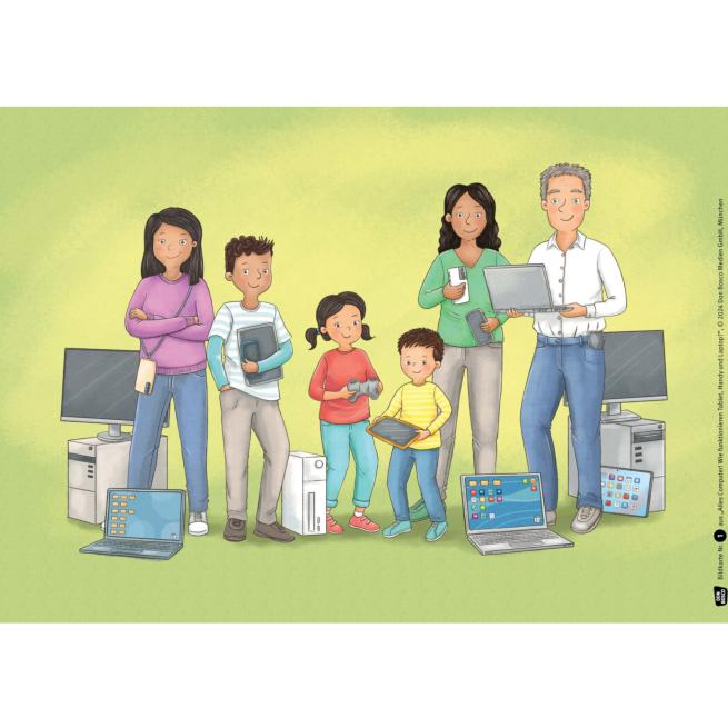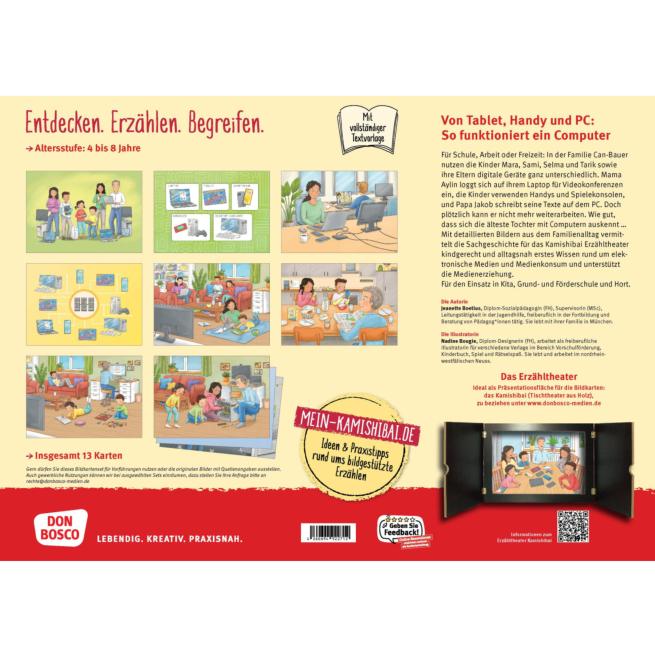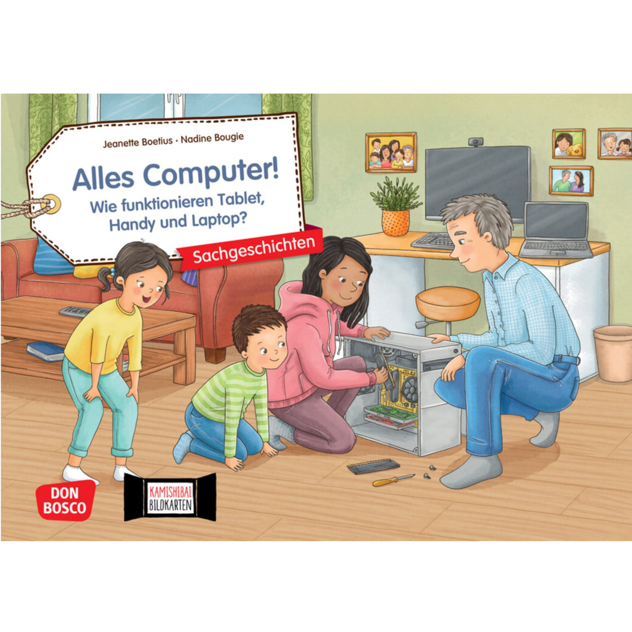 Digitale Medien sind aus dem Arbeits- und Schulalltag ebenso wenig wegzudenken wie aus der Freizeit. Ob Desktop-PC, Laptop, Tablet, Konsolen oder Smartphones, es ist immer von Vorteil zu wissen, wie ein Computer funktioniert. Das stellt auch Papa Jakob fest, als sein Rechner abstürzt und er nicht weiterarbeiten kann. Wie gut, dass seine älteste Tochter sich mit Computern auskennt. Wie sie hilft und was man so alles über elektronische Medien und Medienkonsum wissen sollte, erfahren Ihre Kinder im Erzähltheater Kamishibai.