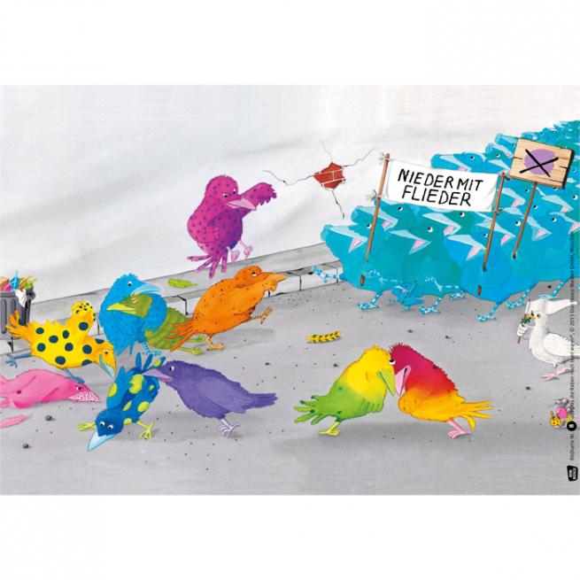 Gibt es die eine richtige Farbe oder ist eine bunte Mischung nicht doch am besten? Warum sollen auch alle dieselbe Farbe haben? Diesen spannenden und immer aktuellen Fragen rund um die Themen Andersartigkeit, Mobbing und Rechthaberei gehen die Kinder anhand der Geschichte um die einst bunten Raben nach.