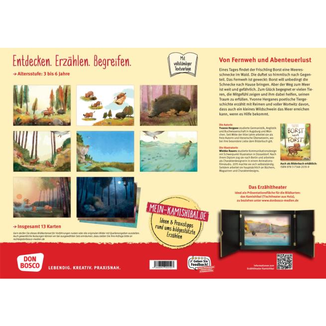 Als Frischling Borst eines Tages im Wald eine Meeresschnecke findet, will er ihr unbedingt helfen und sie zurück in ihr Zuhause bringen. Allerdings ist der Weg zum Meer ganz furchtbar weit und sehr gefährlich. Wie es Borst vom Forst tatsächlich bis zum Meer schafft und welche Rolle dabei viele andere Tiere und die Zauber-Zutat Mitgefühl spielen, erfahren Ihre Kinder anhand dieser Reimgeschichte im Erzähltheater Kamishibai.