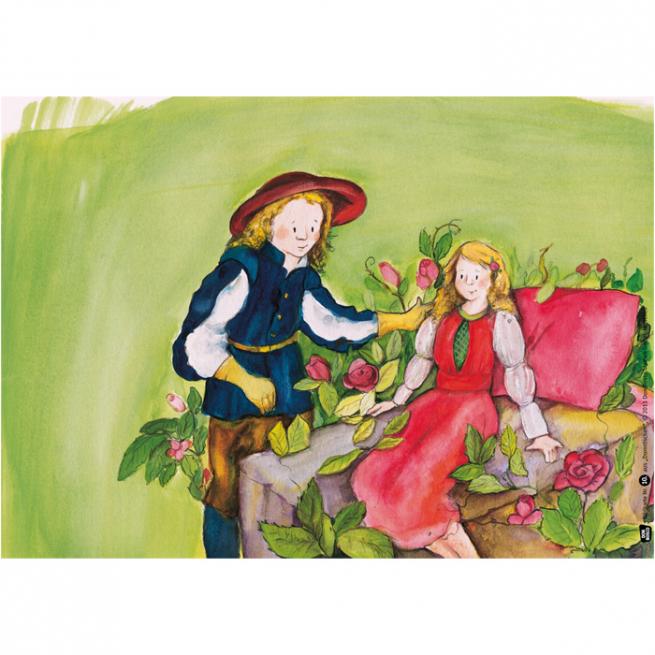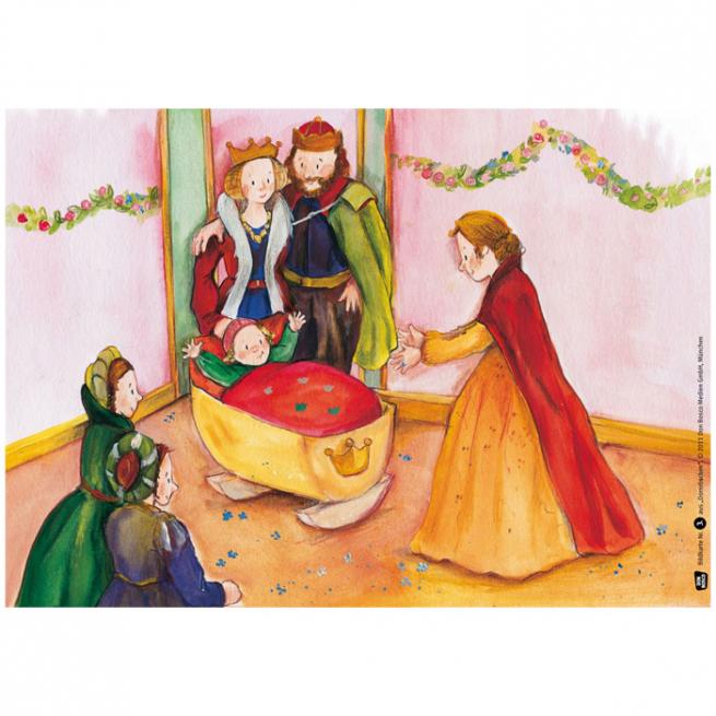 Eine andere Fee wandelt diesen schlimmen Fluch in einen hundert Jahre andauernden Schlaf ab und fortan werden alle Spindeln vom Hof verbannt. Was letztlich an Dornröschens fünfzehntem Geburtstag geschieht und wer die Prinzessin rettet, erfahren die Kinder mit dem Märchen der Gebrüder Grimm und den Bildkarten fürs Kamishibai.