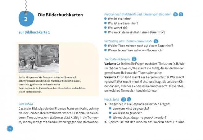 12 farbig illustrierte Bilderbuchkarten mit Textvorlage auf festem Papier, DIN A3
