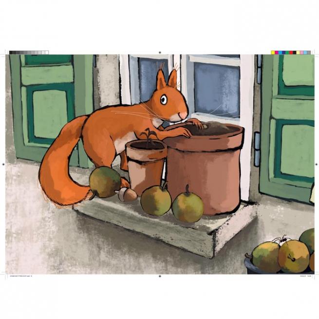 Kamishibai-Bildkarten, Fünf Nüsse für Eichhörnchen