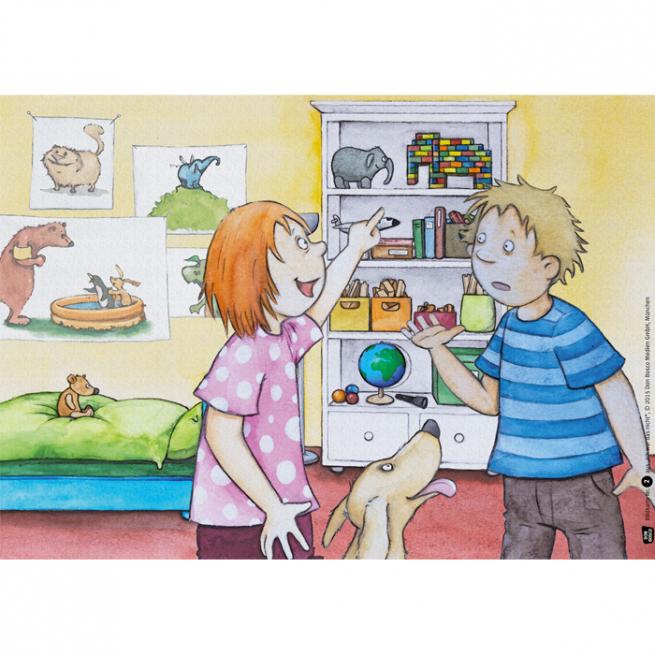 Leo hat tolles Spielzeug. Er will aber nicht, dass Klara mit allem spielt. Doch Klara möchte so gerne mit dem bunten Elefanten spielen, der ganz oben im Regal steht. Plötzlich verlässt Leo das Kinderzimmer und Klara kann nicht länger widerstehen. Sie zieht den Elefanten einfach aus dem Regal und da ist es auch schon passiert: Der Elefant fällt ihr hinunter und zerbricht. Während Leo furchtbar wütend ist, fragt sich Klara, was sie tun kann, damit sie sich wieder vertragen. Wird die Versöhnung gelingen?